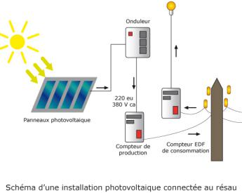 - soit avec des cellules photovoltaïques qui reçoivent les rayons du soleil et la convertissent en énergie électrique.