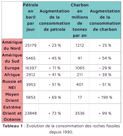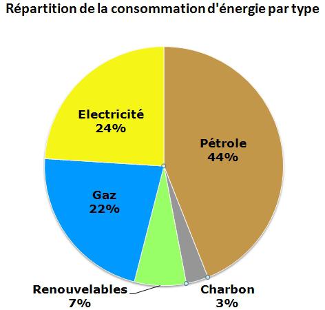 En Europe, nous consommons de plus en plus de pétrole par contre nous n'utilisons pratiquement plus le charbon contrairement aux pays du Moyen Orient.