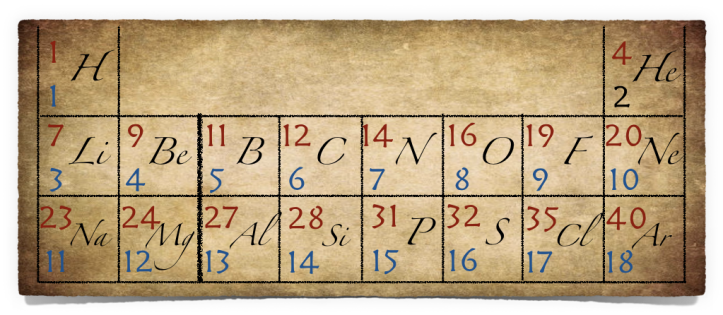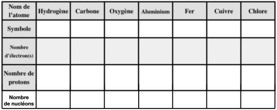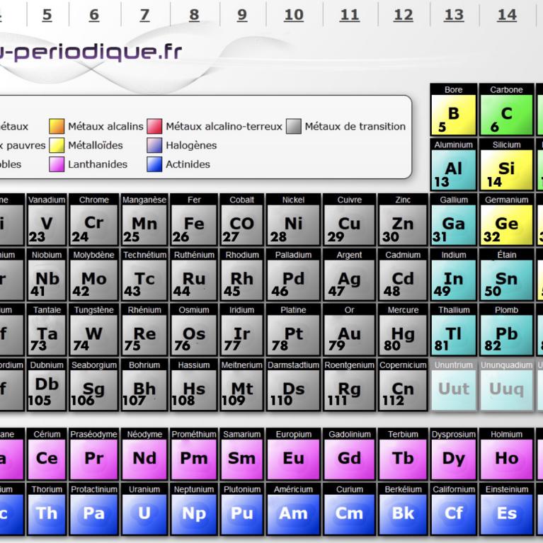 Dans votre grimoire vous avez la classification périodique des éléments et vous devez représenter :