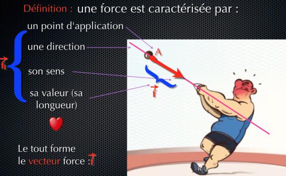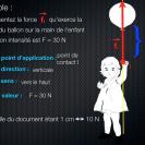 2-2 En vous appuyant sur la vidéo ci-dessous, quels sont les 4 critères permettant de représenter une force ? Trouvez une définition à chacuns des termes.