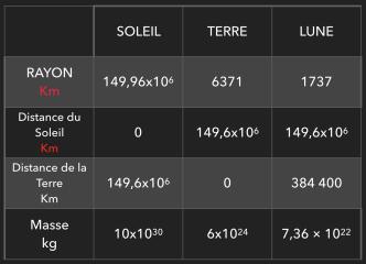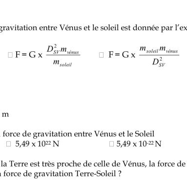 En utilisant la formule permettant de calculer la valeur des forces de gravitation et les données ci-dessous, vérifiez si l'hypothèse de Nabil est correcte.