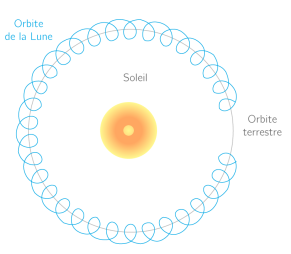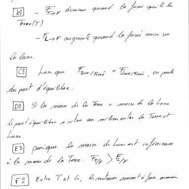 En observant la trajectoire de la Lune par rapport au Soleil, Nabil émet l'hypothèse que la force de gravitation exercée par la Terre sur la Lune est plus importante que celle exercée par le Soleil sur la Lune, sinon la Lune s'éloignerait de la Terre pour se rapprocher du Soleil.