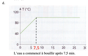 d. A quel instant l’eau a-t-elle commencé à bouillir ?