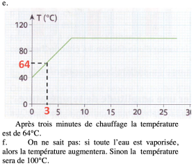 e. Quelle était la température de l’eau après trois minutes de chauffage ?